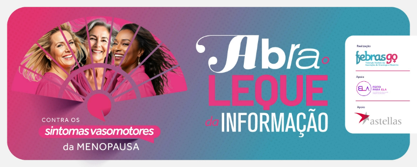 A campanha “Abra o Leque da Informação”, desenvolvida pela Febrasgo com apoio do Feito Para Ela e Astellas, convida você a ampliar o olhar sobre a menopausa. Muito além dos fogachos, os sintomas vasomotores impactam o sono, a saúde mental, o trabalho e a vida íntima da mulher.